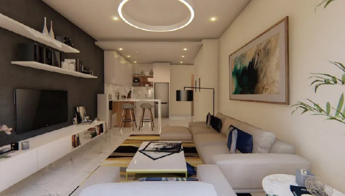 The fabric sofa which is in the sitting room has the contemporary feeling and a simple solid wood coffee table, TV cabinet are in well-proportioned. The material of kitchen marble is qualitative confluence gets contracted atmosphere. The combination of solid wood and high rebound sponge makes it more natural, which alleviates the sharp sense of geometric form in the space. Yabo provides this apartment with elaborate matching and customization. In order to be used for a long time, it is not only strict in material design and technology, but also in hardware quality.