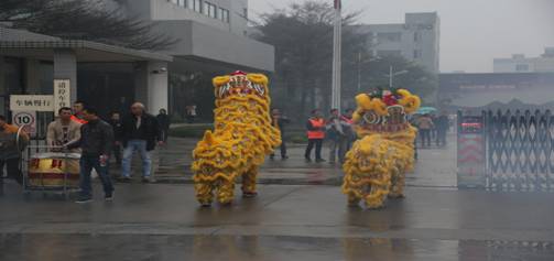醒獅款款步入公司辦公大樓