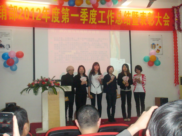 3月20日,我司營銷部在文化活動室召開了“營銷部2012年第一季度工作總結(jié)暨表彰大會”,公司黃總、楊總、劉總、肖總、傅總、以及營銷部全體人員參加了會議。