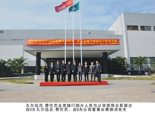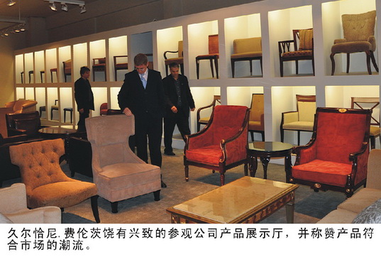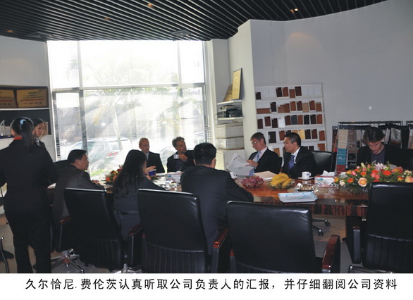 11月19日10時30分,匈牙利共和國前總理久爾恰尼·費(fèi)倫茨率匈牙利經(jīng)貿(mào)團(tuán)在參加完深圳高交會所有議程后,在有關(guān)人員的陪同下,從深圳驅(qū)車到雅柏家具進(jìn)行了考察調(diào)研。公司董事長黃德洪、副總經(jīng)理楊發(fā)浩、商務(wù)部經(jīng)理褚燕珊及其有關(guān)人員參加了接待。副總經(jīng)理楊發(fā)浩首先致歡迎辭并向客人介紹了公司的基本情況,他說“公司通過十年的艱苦努力,已成為國內(nèi)外知名度很高的專業(yè)性的酒店家具供貨商,無論在設(shè)計、生產(chǎn)、銷售、服務(wù)各環(huán)節(jié)在本行業(yè)均有領(lǐng)先優(yōu)勢?!蓖瑫r,還向客人介紹了公司在英國、愛爾蘭、俄羅斯等歐洲國家的業(yè)務(wù)開展情況。久爾恰尼·費(fèi)倫茨總理說“從深圳到雅柏三個多小時的車程,雖說很辛苦,但是很值得。雅柏家具的產(chǎn)品質(zhì)量和價格優(yōu)勢是我們此行的動力。匈牙利以及整個歐洲近年來在旅游、酒店行業(yè)發(fā)展的很快,希望能有與雅柏開展長期的合作的機(jī)會。”隨后,久爾恰尼·費(fèi)倫茨總理一行在公司負(fù)責(zé)人的陪同下,饒有興致的參觀了公司產(chǎn)品展示廳。在看到公司為北京奧運(yùn)工程設(shè)計制作的家具時,久爾恰尼·費(fèi)倫茨總理回憶了去年他參加奧運(yùn)會的情況,在看到公司設(shè)計制作的總統(tǒng)套房樣板時,翹起大拇指,連說“very good……”