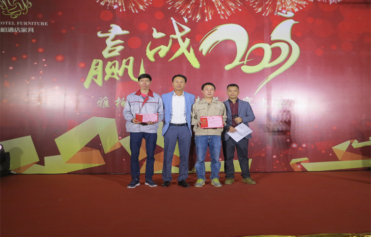 黃凱波董事長(zhǎng)給表現(xiàn)優(yōu)秀的職員頒發(fā)“年度優(yōu)秀職員獎(jiǎng)”并合影留念