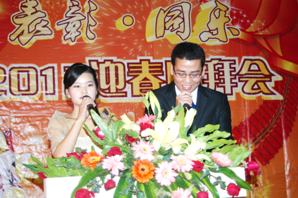 The New year party started with the dance“Walking in the waves”、“Life in Blossom”、“Adoration to Happiness”,when beautiful ladies onto bright stage, waves warm applause coming,into a ease,harmonious,happy,touch and passion atmosphere.