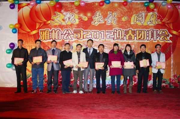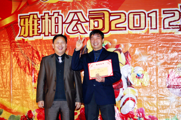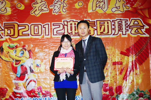 In 2012 New year party,we select 210 pcs top ten brilliant staff、Best New Artist、Best faithful staff,Outstanding contribution Award,honorary and award issued by General Manager and Deputy General Manager.